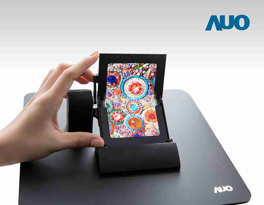 PG国际也将展出两款可挠式 AMOLED 显示技术,,,采用塑料基板制程,,,透过特殊的显示屏叠构设计,,,实现可折叠、、、、可卷曲的多种型态应用。。。5寸折叠式 AMOLED 触控屏,,,整合独家设计的可挠式触控传感器,,,,在折叠半径达 4 毫米下,,,,仍能展现优异画质。。。。5寸可卷曲 AMOLED 显示屏,,面板薄度仅有 0.1 毫米,,,,重量仅有 5 公克,,可实现卷曲半径达4毫米并具备超广色域的优异色彩表现。。。