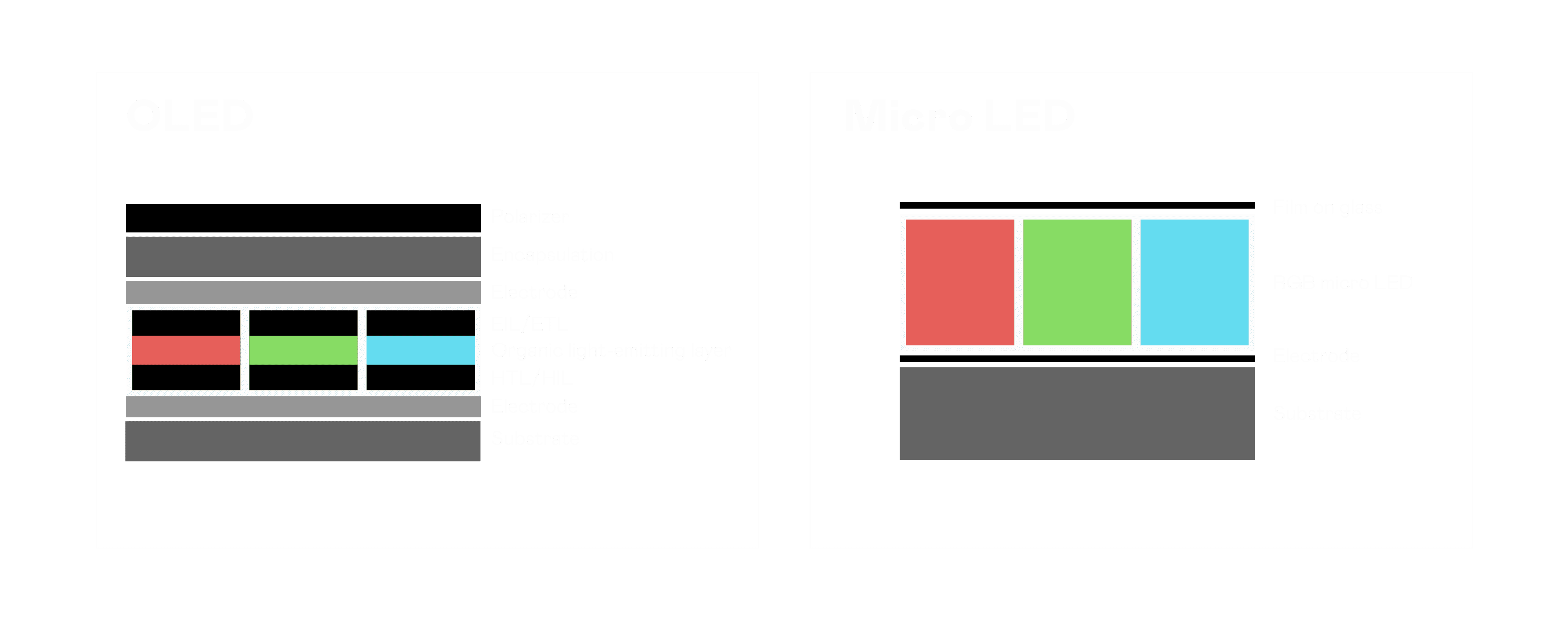 以 LED 做为显示画素,,,,可让 LED 的发光效率发挥到极致,,,,从而让显示器具备优异的亮度表现,,,不论是在户外或室内,,,,均具备出众的显示效果。。。同时,,,与使用有机材料的 OLED 相比,,,,LED 具备更稳定、、、寿命更长的特性,,,不仅不会有画面烙印问题,,,,而且更不容易出现故障、、坏点。。。